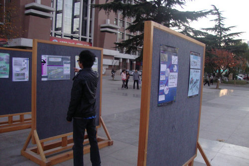 11月20日,由艺术学院举办的“我的校园我规‘画’”环境设计大赛作品展在四方校区科技广场设展。