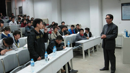 11月16日晚,由人文学院机械专业学生会以及校社团桃花诗社共同主办的一场关于“文学创作与鉴赏”的讲座在2阶304举行。此次讲座由省作家协会会员,青岛开发区作家协会副主席,《金沙滩》文学杂志责任编辑,山东省当代文学院青岛创作中心理事,人文学院文学艺术教学部主任宋青林教授主讲。各兄弟学院学生会负责人和机械各专业的学生参加了此次报告会。