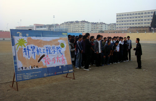 为了提高2010级新生班集体的班级凝聚力,加强班级荣誉感,11月10日下午4点,由计算机学院学生会体育部主办的2010级大接力趣味比赛在运动场拉开序幕,所有新生班级都积极踊跃的参加到比赛中去,比赛现场充满了欢声笑语。
