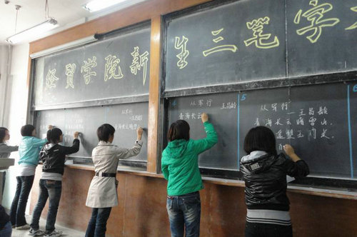 比赛在同学们热烈的掌声中圆满结束。本次大赛的成功举办不仅调动了同学们学习书法的积极性,而且弘扬了有着几千年悠久历史的中华传统文化,陶冶了同学们的情操。(经贸学院 张英)