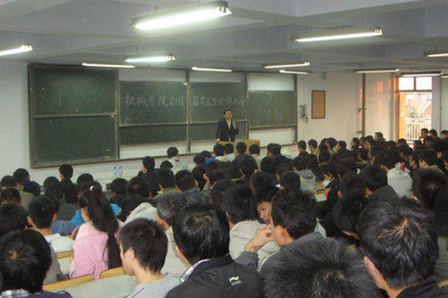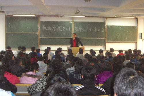 10月27日下午4点,一教400阶座无虚席,机械学院2011届毕业生大会召开,机械学院党总支副书记肖学斌,机械学院就业辅导员张建军老师,以及全体2011届毕业生参加了此次会议。会议主要传达学校学生就业工作会议精神以及2011届毕业生就业工作程序及政策。肖学斌副书记就目前的就业形势,近年学院的就业情况以及促进本学院积极就业的措施等方面做了讲话。张建军老师传达了学校学生就业工作会议的重要精神,以及对本学院2011届毕业生的就业体系和就业政策做了大力宣传,鼓励毕业生掌握就业信息和积极就业。