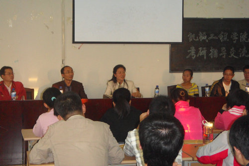 为积极实行学生处面向考研学子的三航工程,10月14日下午4点,机械学院在老图书馆416为07级学生举办考研导航经验交流会。机械学院王优强副院长、研究生处薛宏蕊老师、就业辅导员张建军老师出席了会议,与会的还有三名在校研究生张骞、石成霞、张盈同学,会议07级辅导员张建军老师主持。