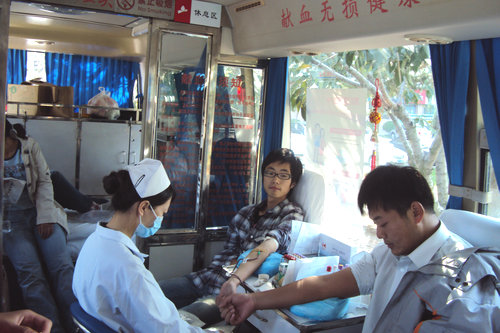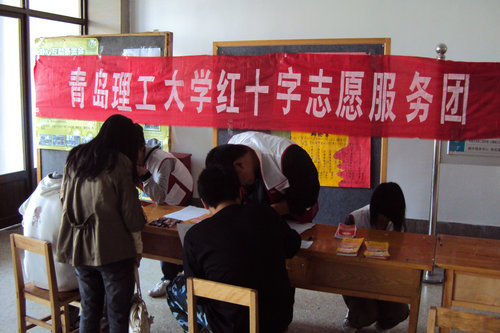 为弘扬良好的社会风气,构建社会主义和谐社会,青岛理工大学红十字志愿服务团应青岛市中心血站所需于10月13日在我校一号教学楼前组织了无偿献血活动。