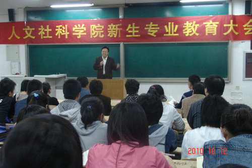 新学期开学之初举行新生专业教育大会有利于新生进一步了解本专业的详细情况,做好专业定位;有助于新生更好的树立发展目标,朝着高素质复合型人才更好的发展奠定了基础。(人文学院 宋丹丹)