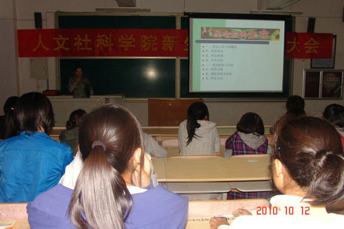 10月12日晚,人文学院在2教222举行新生专业教育大会。学院院长谭业庭,党总支书记王众臣,副书记林桂梅,团总支书记刘聘以及广告、社工专业全体教师参加了本次大会。本次大会由王众臣书记主持。