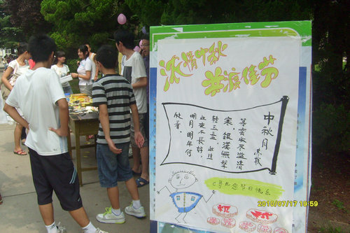 蜂拥而至的人群,精致小巧的卡片,真挚感人的祝福,如火如荼的场面再一次见证了同学们对家乡亲人的眷眷情怀。同学们争先恐后的在各种卡片上写下自己的心愿和祝福,并挂在树上。有些刚入学的新生,都是含着温暖而且幸福的泪水写下自己无尽的祝福。言简情意浓,语短动心间。那些话语蕴含了多少离家在外的学子的心声,感动了在场的每一个人。同时学生会还安排了抽奖发月饼活动,伴着一个满载好运与祝福的抽奖箱的出现,将此次活动推向了高潮,一个个月饼在大家手中跳跃,一张张写满“中秋快乐”的字条在大家手中传递,传递的不仅仅是一份快乐更是一份真情,更让无数无法回家团圆的同学们感受学校大家庭的无限温暖与欢乐。