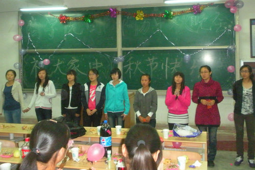为让10级新生能度过一个温馨节日,商学院10级各新生班级在班主任和班主任助理的带领下把教室装饰一新,五彩的板报,各色的气球……,营造出一派节日氛围;优美的歌声,曼妙的舞姿……,精彩纷呈的节目引得同学们笑声连连,掌声、喝彩声不断。领导老师的祝福、问候更让同学们忘却了思乡之愁。新生们深深体会到:虽然离开了家乡,离别了亲人,但自己并不孤单,因为在商学院这个大家庭,有时刻牵挂、关心自己的师长,商学院就是自己的家。(商学院 贾玉跃)