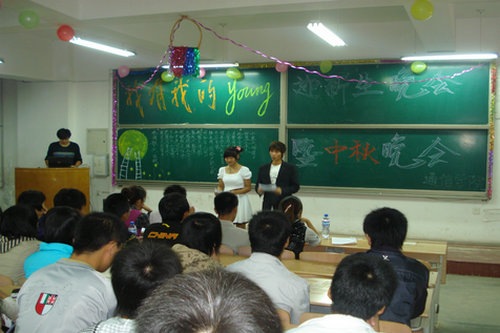 通信学院迎新生、庆中秋晚会于9月22晚7点在二教220、221举行。学院10级辅导员王俊老师、学生会全体成员、全体新生参加了本次晚会。“每逢佳节倍思亲”,学院领导、高年级学生希望通过此次晚会让远离家乡的新生,同样能感受到家的温暖与节日的喜悦。