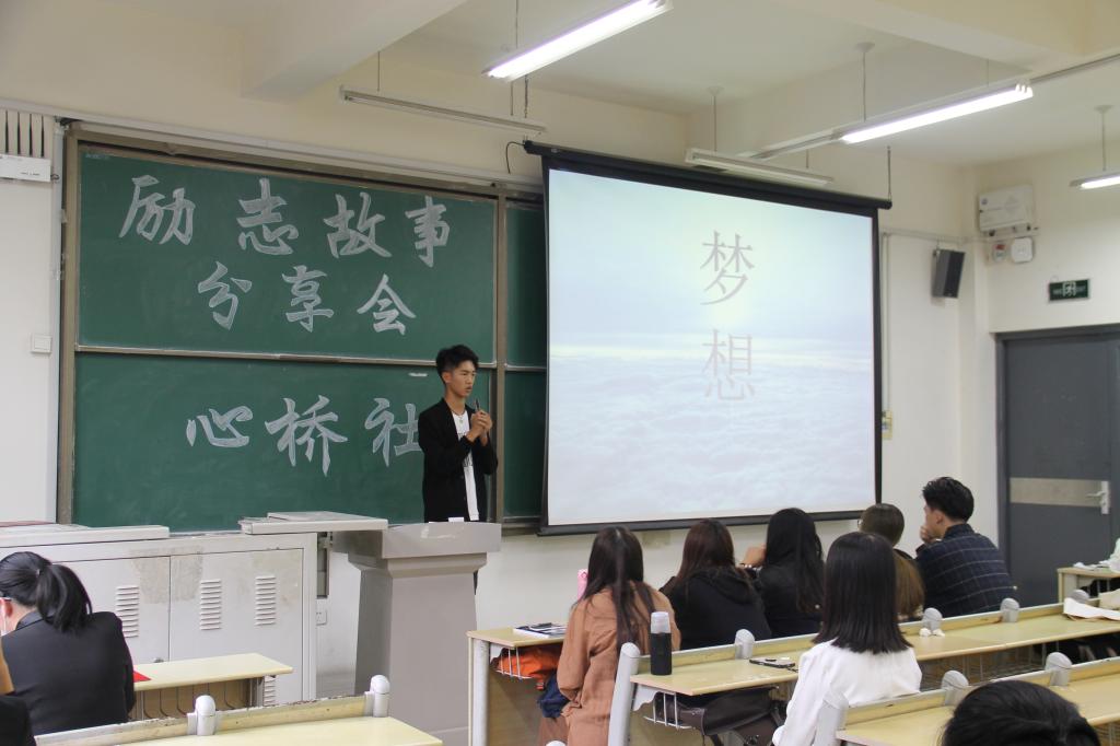 为引导广大青少年学生树立正确的人生观和积极向上的人生态度,10月9日下午,商学院于嘉陵江路校区主教学楼B231举办励志故事分享会。商学院22名励志青年参与比赛,辅导员宋颖、商学院心桥社全体成员和商学院全体朋辈志愿者参加。