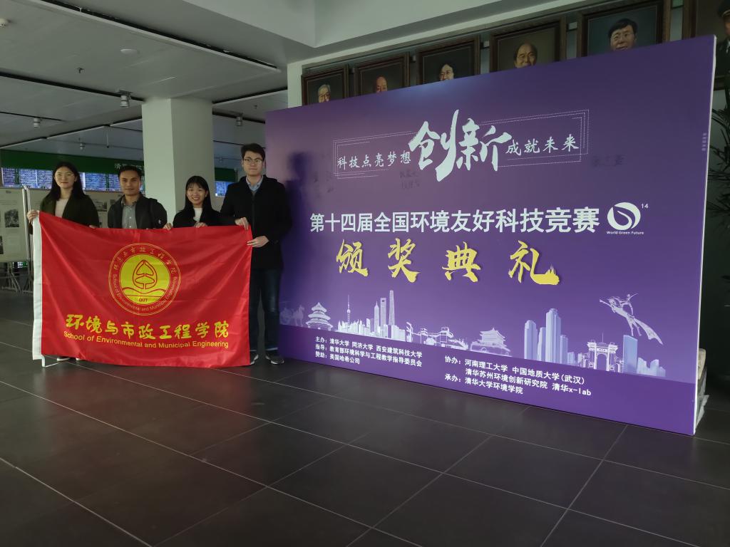 11月2日,第十四届全国环境友好科技竞赛颁奖典礼在清华大学举行。由环境与市政工程学院刘龙和张恬老师指导,张晗、袁秀连、李肖涵等同学完成的作品《校用净水、发电、蓄水一体化装置》在此次比赛中获得理念组创意鼓励奖。