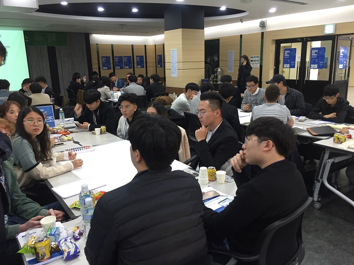 国际学生与韩国国内学生一起开展“通过头脑风暴而挖掘全球创业活动”活动,所有参会学生随机组成全球联合组,每个小组发掘国际创业创意项目,探索国际地区社会问题,发掘国际问题解决方案创意,各组进行制作资料并进行展示。在经过长达三个小时的激烈讨论与展示后,我校土木工程学院胡孔知同学所在全球联合第二组团队获得此次头脑风暴活动的第一名。
