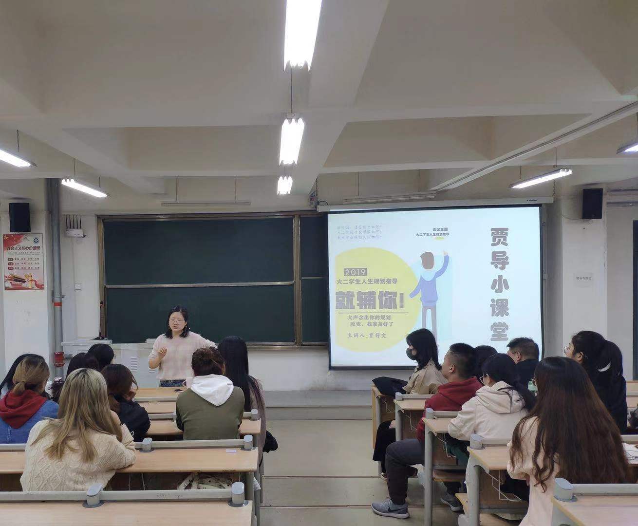 为进一步加强学风建设,解答2018级学生对于考研、就业、考公等方面的疑惑,11月6日下午,人文与外国语学院在教学楼B235开展第三期“就辅你:贾导小课堂”活动,此次小课堂由辅导员贾舒文主讲,主题为"大二进击,妙不可言”。