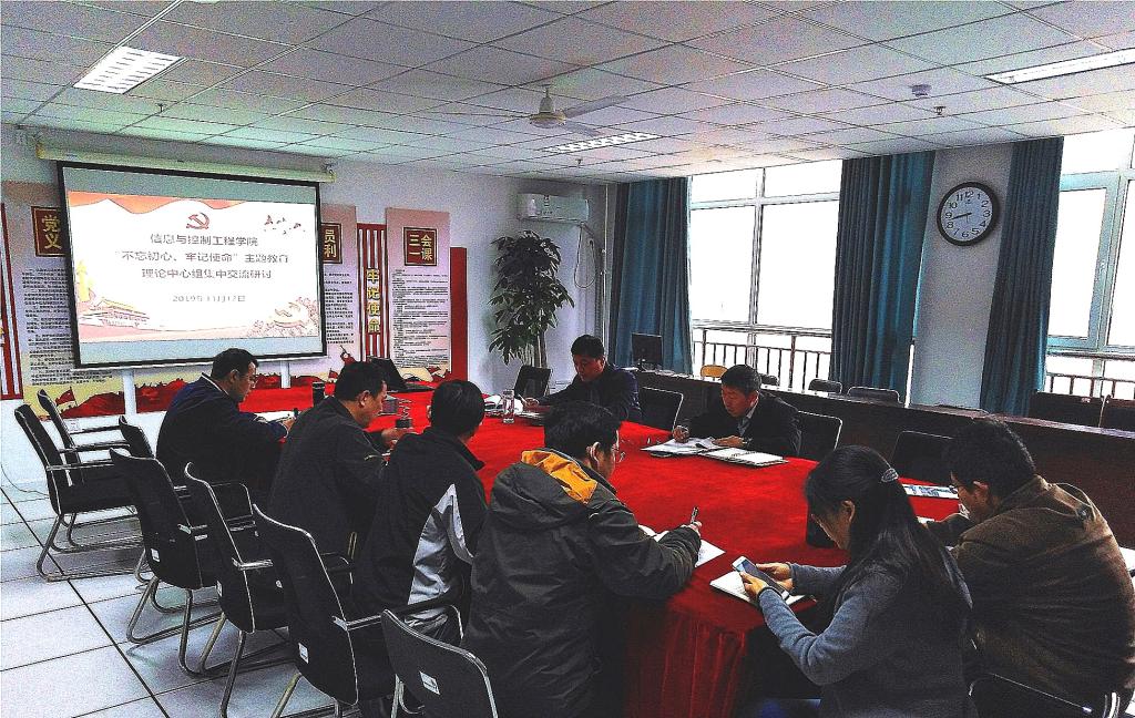11月12日上午,根据学校“不忘初心、牢记使命”主题教育学习计划安排,信息与控制工程学院理论中心组在信控大楼206党建活动室开展了“不忘初心、牢记使命”主题教育第三次集中交流研讨。交流研讨围绕“政治纪律和政治规矩、党性修养、廉洁自律”三个专题展开,交流研讨会由学院党总支书记董典同主持。