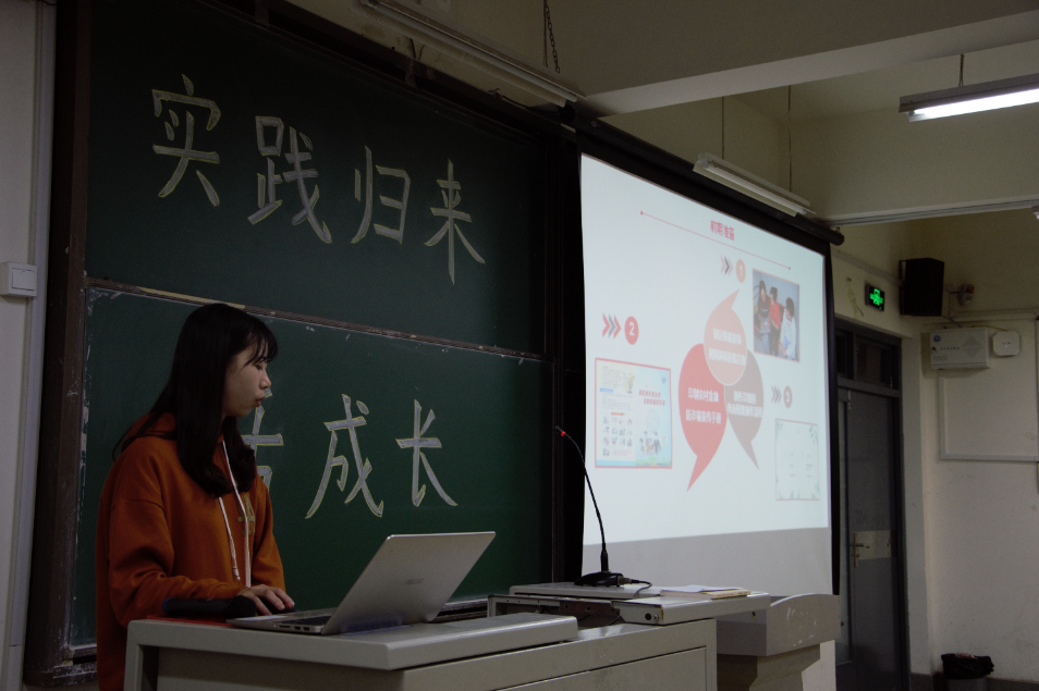 商学院共有86支队伍,500余名同学参加到2019年暑期“三下乡”社会实践活动中,足迹遍布山东、吉林、河北、陕西、甘肃、河南、重庆、海南等省份。她们传播新时代精神,凭借团队的坚持与和努力,为乡村振兴贡献青春智慧和力量。此次作为代表的八支社会实践队伍依次上台为大家展示和分享本次社会实践的感悟和成长。其中来自“一带一路脱贫攻坚”团队的同学分享了暑期前往革命圣地延安宜川县社会实践时的经历,她们富有感染力的语言、生动形象的音像资料和详实的调研数据向大家展示了延安宜川县在党的领导下,脱贫攻坚,宜川人民过上富裕生活的情况,勾勒出了一个崭新的不一样的新延安风貌,赢得了在场师生的阵阵掌声。“出彩-青春”队讲述了团队到临沂市费县牛角峪村,利用专业知识,向农民宣传和普及防金融诈骗、农村金融自治推动乡村振兴等情况。