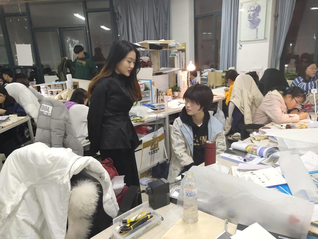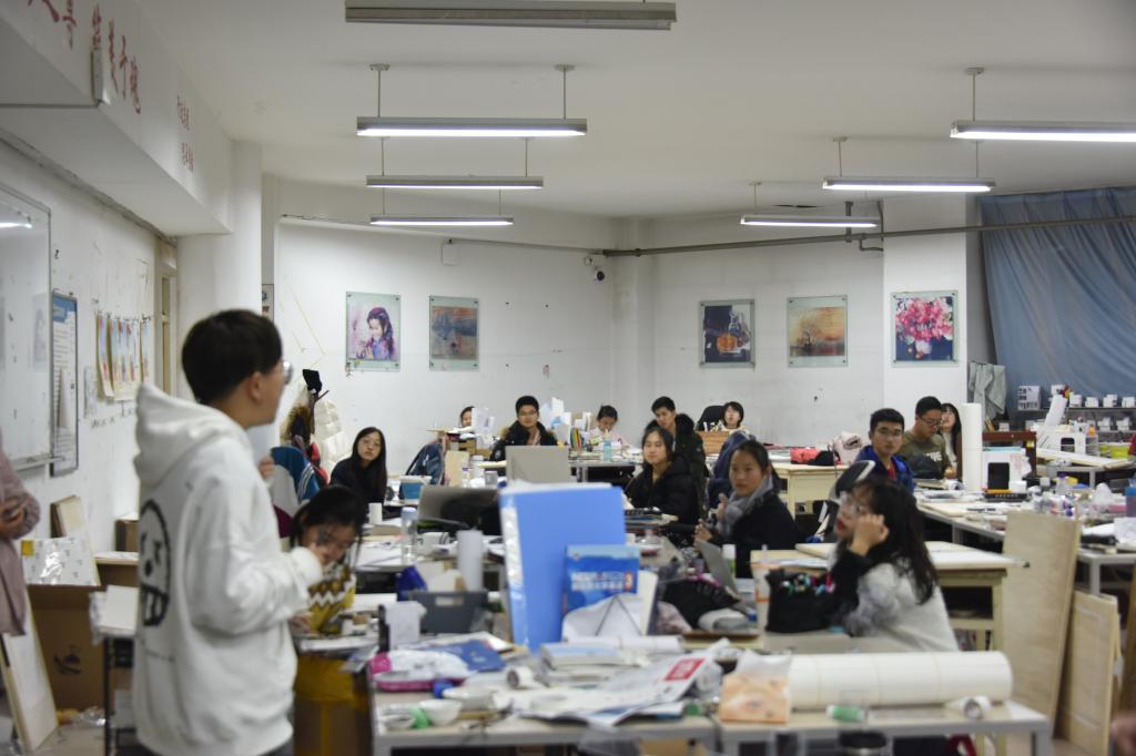 大一的同学们也积极参与,反应热烈,在答疑阶段中提出了如何裱好纸、在渲染时如何收好边、业余时间如何安排等问题。两个年级的同学都特别重视这次活动,也希望通过活动的举办,同学们在大一时就尽快认清方向,打好专业课程的基础,为以后的几年做铺垫。活动的最后,大二的学长学姐们留下了自己的联系方式,以便于与同学们联系。