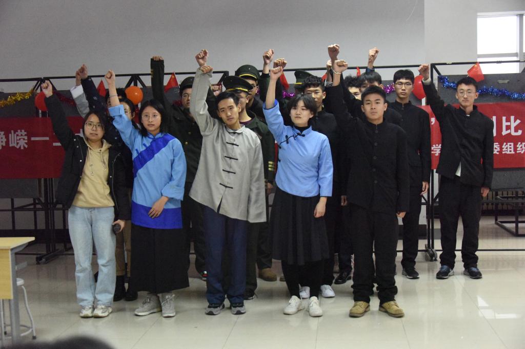 19级全体班级参加了比赛,经过紧张的排练,同学们优化剧本,音乐、服装、道具一应俱全,在演出过程中风格迥异。在话剧故事情节上,有的改编自历史纪实剧,有的为历史故事剧;话剧感情基调上,有的如《愿中国青年摆脱冷气》般不乏诙谐,有的如《恰同学少年》般悲情款款;话剧语言效果上,有的像《青年赤卫队》地域色彩之浓郁,有的像《遗事》抒情效果不俗。不管是何种类型、何种风格,殊途同归的是对这段燃情岁月的坚守与呈现。台下观众们服装得体,表情庄重,跟随故事情节时笑时怒时喜时哭,但无一例外的是为那些革命烈士表达敬意和对畏战者与侵略者的深深痛切。