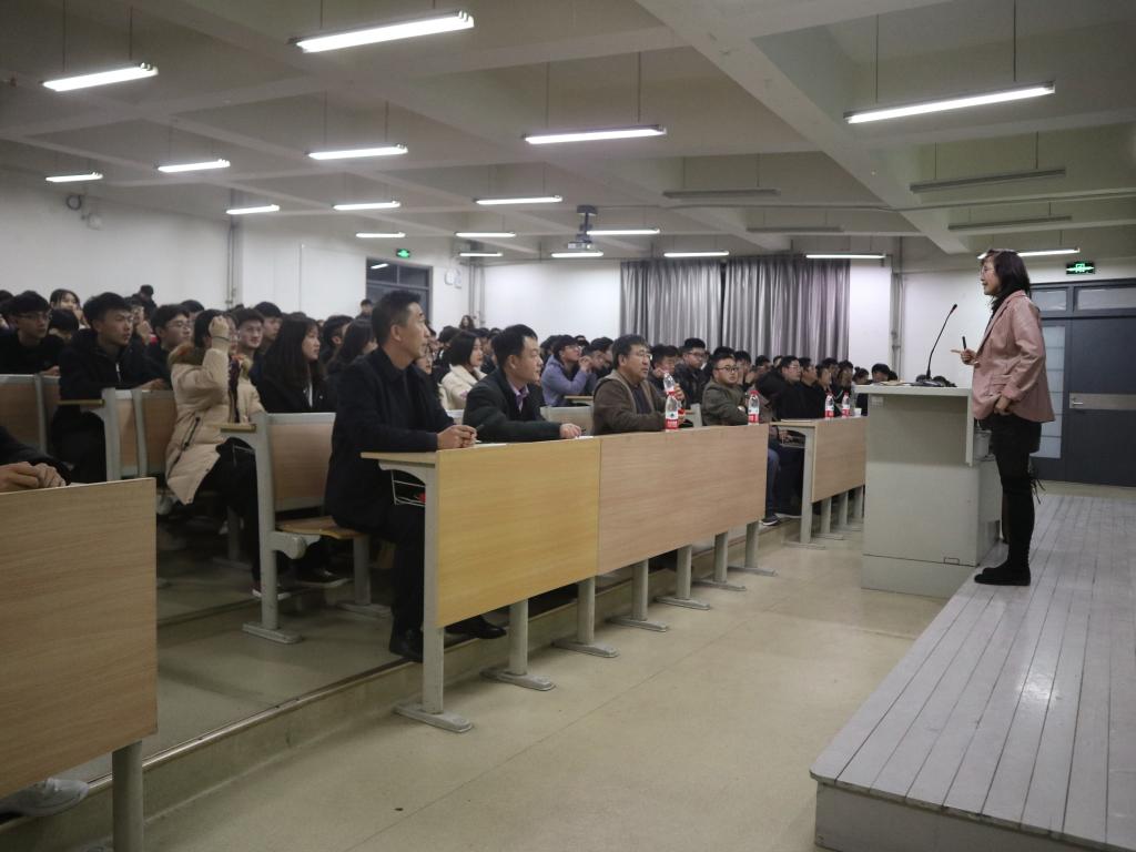 12月20日下午,理学院在嘉陵江路校区主教学楼西报告厅举办中华优秀传统文化专题报告。我校汉语言文学专业教师、山东省演讲学会常务理事、青岛市高校演讲委员会主任潘玲副教授应邀作“四大名著入门”报告。理学院院长于进伟、党总支副书记刘聘和学院300余名师生参加报告会,报告会由党总支副书记刘聘主持。