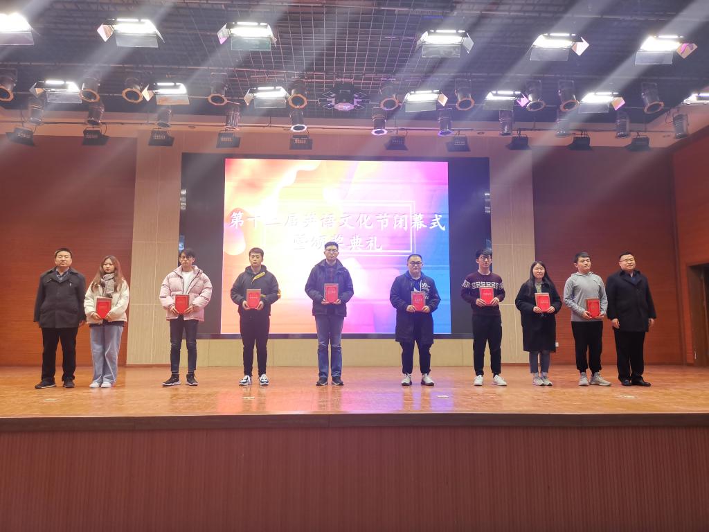 12月19日晚,临沂校区第十三届英语文化节闭幕式暨颁奖典礼在图书馆报告厅举行。临沂校区党委常务副书记李国涛,学校理学院副院长、校区基础部主任戚云松,学生工作部副主任、团委书记刘宗庆,基础部副主任李齐,教学科研部副主任孙宗明出席并为获奖学生颁奖。
