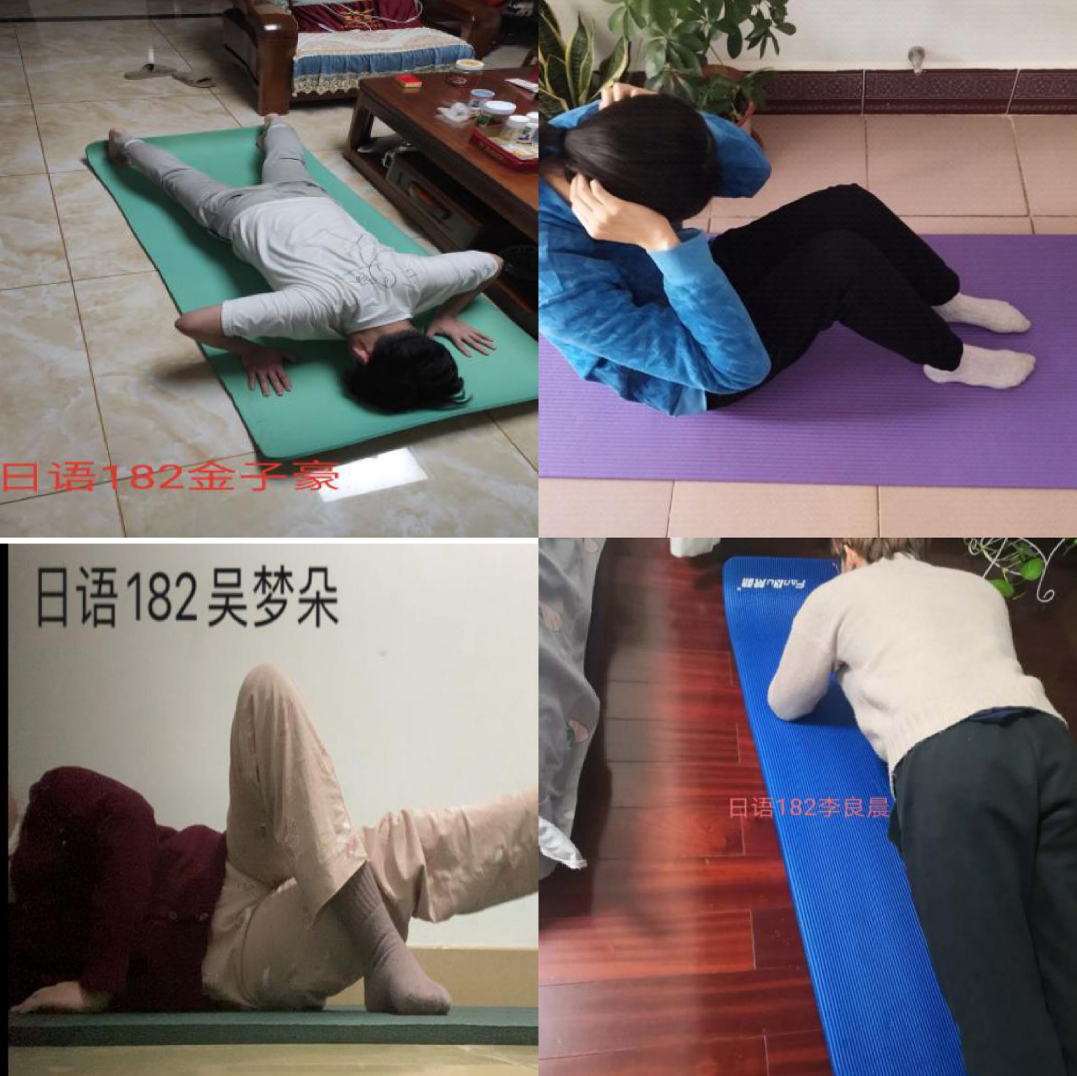 本次活动积极打通线上新媒体渠道,在响应国家号召居家抗“疫”的同时,也保证健康适当的运动量。活动通过线下自主锻炼的形式科学推广居家健身,并取得良好反响。日语182吴梦朵表示练习瑜伽是自己平时舒展筋骨、减压养心的方式;日语182李良晨表示每日坚持平板支撑就不难收获马甲线。同学们踊跃提交健身打卡音像资料,其中俯卧撑、仰卧起坐、平板支撑等运动方式占比例较大,反映出学生居家运动健身的良好习惯。此次活动成功调动同学们的积极性,充实丰富广大同学防疫期间的居家生活,有效增强自身体质,进一步引导学生健康科学地参与疫情防控工作。