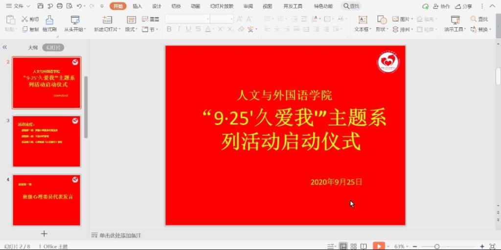 9月25日,人文与外国语学院闻语心声心理辅导站举办线上925“久爱我”启动仪式暨《心灵捕手》电影赏析活动。本次活动旨在通过一系列主题活动引导大学生正确认识自我,加深对于心理健康重要性的理解。校心理健康教育中心主任刘安庆、闻语心声心理辅导站全体成员以及积极报名的一百余名同学参加活动。
