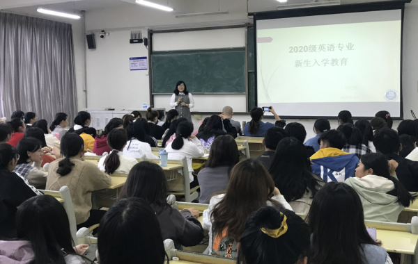 之后,各专业分别为新生做了各具特色的专业教育。英语专业专业教育主要从专业发展、培养方案、大学专业学习特点三方面开展。邀请了2020届优秀毕业生录制短视频,现身说法,介绍大学专业学习规划和学习方法等;山东网商集团教育总监曹萌对20级跨境电商班同学专门做专业教育,介绍跨境电商专业的现状和广阔发展前景,激励同学们奋发拼搏。社会工作专业教研室主任刘世颖用学生参演、制作的小视频《社工disco》开场吸引同学们的注意力,并传达了社工专业的知识和理念,使同学们在愉悦放松的气氛之下开始此次教育会。刘世颖就社会工作专业的发展历程、培养方案、师资队伍、实习基地、社会服务以及就业方向与前景等方面进行了深入的介绍,消除了学生对专业发展的迷茫。汉语言文学专业的专业教育在师生共同观看专业师生自导自演的吟诵视频《木瓜》中拉开帷幕。教研室主任张成福强调,汉语言文学专业重尚风骨、注重对学生人格的养成,提出了“中正仁和,文以化人”的人才培养理念,形成了重实践、尚风骨、尊学术的优良传统。张成福着重从什么是汉语言文学专业、汉语言文学专业学什么、汉语言文学专业能干什么、汉语言文学专业怎么学、汉语言文学专业要求大家怎么做等方面对专业进行了介绍。广告学专业常宁从你怎样认识现代广告的提问开始,介绍了新媒体对广告行业的影响,特别说明了今后专业所需的技能与就业方向,对同学们的专业学习提出了要求。日语专业主任王星的专业介绍与校企合作企业方共同开展,通过介绍,大一新生对将来的专业学习和专业去向有了较清晰的认识。各专业介绍后,专业教师与各自学业导师组学生见面进行了深度交流。