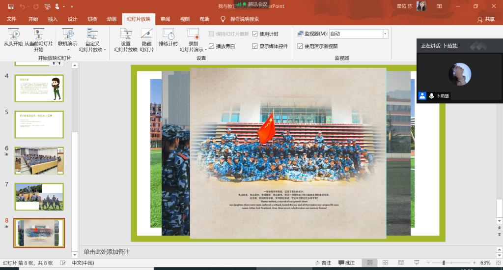 近日,管理工程学院召开主题团日活动布置会,以腾讯会议为载体。会议由管理工程学院分团委书记、学工办主任陈永亮主持,各团支部全体团员参加会议。会议开始,陈永亮对此次团日活动以及今年的军训形式进行了简单介绍,随后播放2020年教官团电子相册,同时邀请教官团成员卜茹慧、周欢等教官从教官的选拔、备训情况、主要工作、典型事迹四个方面进行了详细地介绍。最后是互动环节,以此更好地了解、领悟教官的心路历程。通过卜茹慧同学的讲解引起支部所有人对军训教官团的向往,也让大家深深体会到了军训教官团光荣背后的辛酸与艰苦,学习教官勇于担当、乐于奉献、吃苦耐劳、勤于实践的精神和品质。