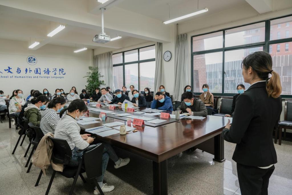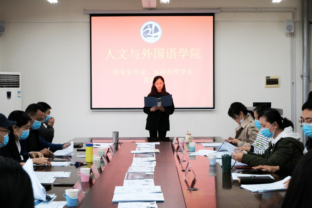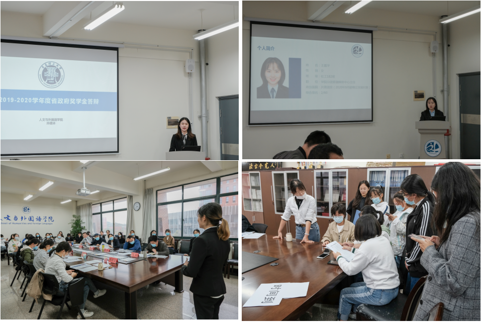 为完成2020年国家奖学金、山东省政府奖学金评定工作,充分体现国家奖学金评定公开、公平、公正的原则,进一步发挥优秀学生的榜样示范作用和奖学金的激励引导作用,10月14日下午,人文与外国语学院在嘉陵江路校区主教学路A410召开2020年国家奖学金、省政府奖学金评选答辩大会。人文与外国语学院党总支书记王新、党总支副书记王振、学生处资助中心主任董虎、办公室主任曲燕、学生办公室主任分团委书记马松、教科研办公室副主任颜宁宁、组织员陈刚、辅导员贾舒文、王才升共9位老师担任评委出席本次答辩会,各年级组织部分学生代表到现场观摩。