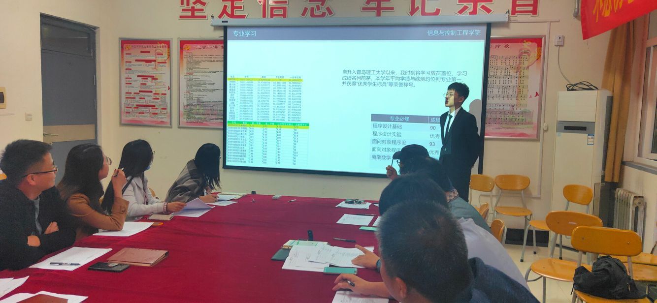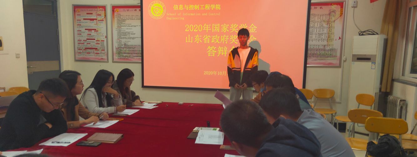 为提升学院学风建设和科研创新水平,推动2020年度奖助学金评选工作顺利进行,10月15日中午,信息与控制工程学院2019-2020学年国家奖学金、山东省政府奖学金公开答辩会在七公寓党建活动中心举行。信息与控制工程学院党总支副书记曲良波、学工办主任兼分团委书记张英华和全体辅导员14人组成奖学金评审小组,并担任答辩评委。