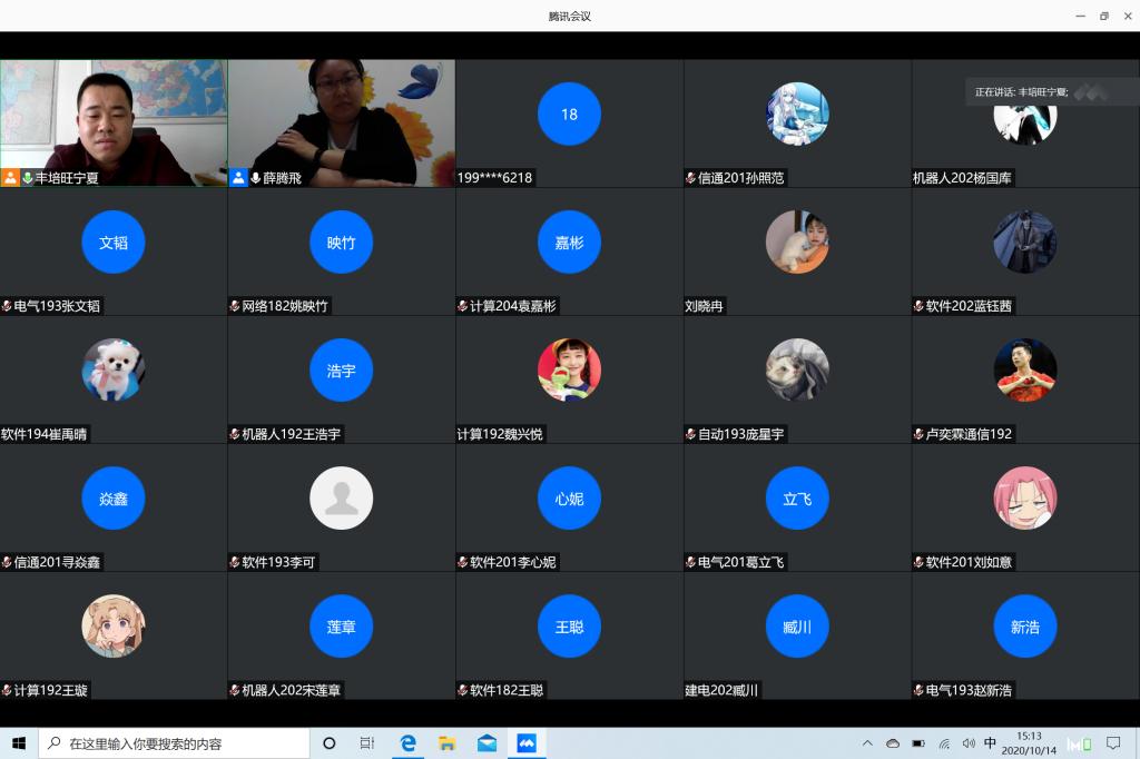 为指导学生生涯规划,促进学生健康发展,10月14日下午,信息与控制工程学院2010届校友,海康威视宁夏业务中心总裁丰培旺应邀参加信控学院校友讲坛,通过腾讯会议为信控学子做生涯规划的报告。报告由辅导员薛腾飞主持。