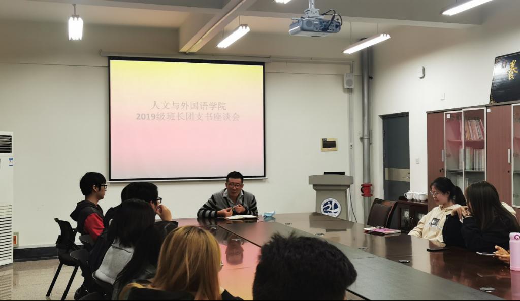 为增强学生干部责任意识,提高学生干部工作能力,助推学生干部明确下一步工作方向,10月20日,人文与外国语学院在嘉陵江路校区主教学楼召开2019级班长团支书座谈会。会议由2019级辅导员陈刚主持,2019级全体班长团支书参与会议。