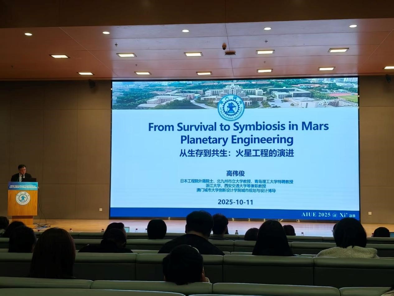 10月10日,学校滨海人居环境学术创新中心首席科学家、日本工程院外籍院士高伟俊教授应邀作题为 “From Survival to Symbiosis in Mars Planetary Engineering(从生存到共生:火星工程的演进)”的大会主旨报告。高伟俊院士从跨学科视角出发,系统梳理了人类在火星工程探索中从“求生”到“共生”的科学演进历程,提出了“共生型火星工程”这一前瞻性理念。他强调,火星工程不仅是未来太空居住技术的试验场,更是验证人类如何在极端环境中实现能源循环、生态修复与社会协同的关键路径。这一理念引发与会专家的广泛共鸣,并在会议现场引发关于生态调控、极端能源利用等议题的热烈讨论。
