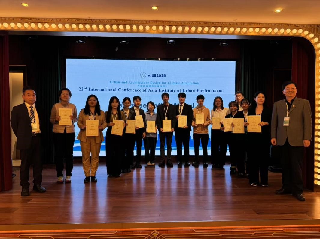 近年来,建筑与城乡规划学院秉持开放办学理念,持续加强与国际高水平学术机构的合作,通过参与国际会议、开展联合科研和促进师生交流,不断提升科研创新能力与国际影响力。本次在AIUE 2025国际会议上取得的优异成绩,充分展现了建筑与城乡规划学院在面向未来人居环境、可持续城市发展与绿色设计等方向的学术深度和实践广度,也为学院进一步深化与亚洲城市环境学会的合作奠定了良好基础。 (撰稿:蒋金明;审稿:王中帅)