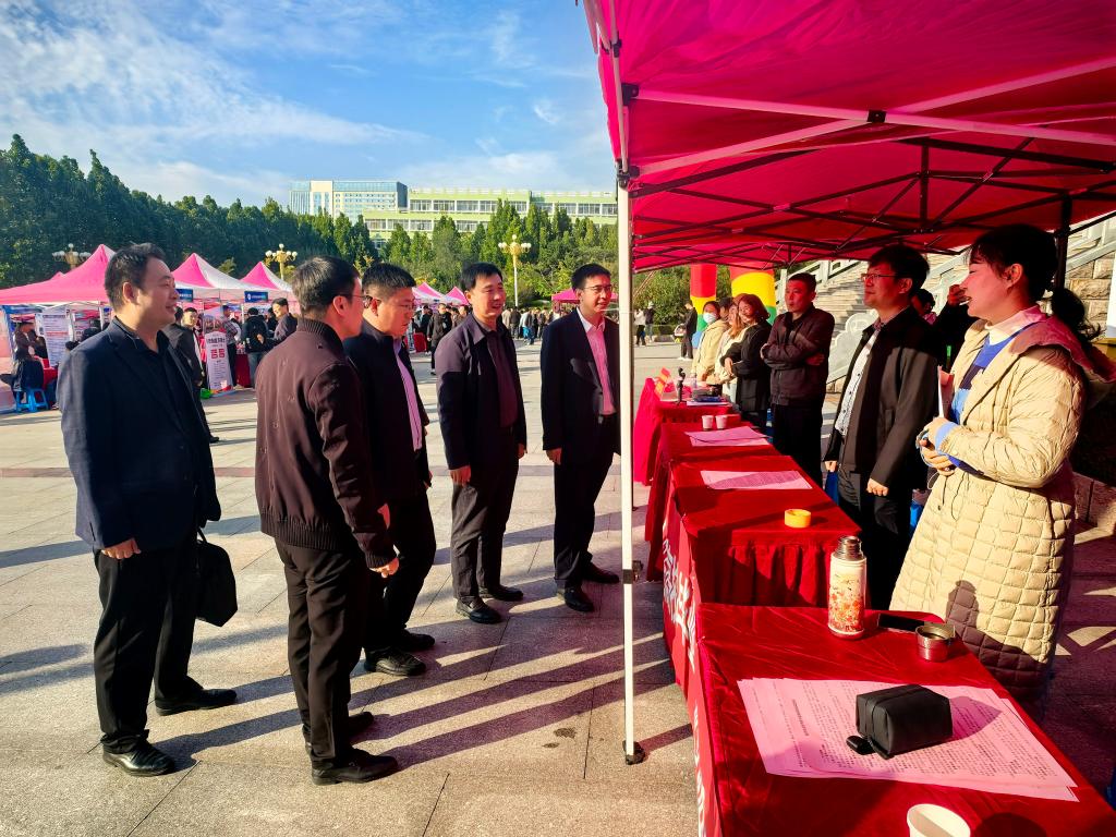 10月22日,临沂校区在图书馆广场举办“青春新赛道 ‘职’通新未来”2026届毕业生秋季校园双选会。本次双选会汇聚了京东集团股份有限公司、歌尔股份有限公司、天元建设集团有限公司、鲁南制药集团股份有限公司等154家优质企业,形成“行业龙头引领、优质民企聚力、本土企业支撑”的多元引才体系,涵盖制造、金融、信息技术、现代服务等多个重点行业,提供就业岗位1700余个,为毕业生搭建了广阔精准的求职平台。