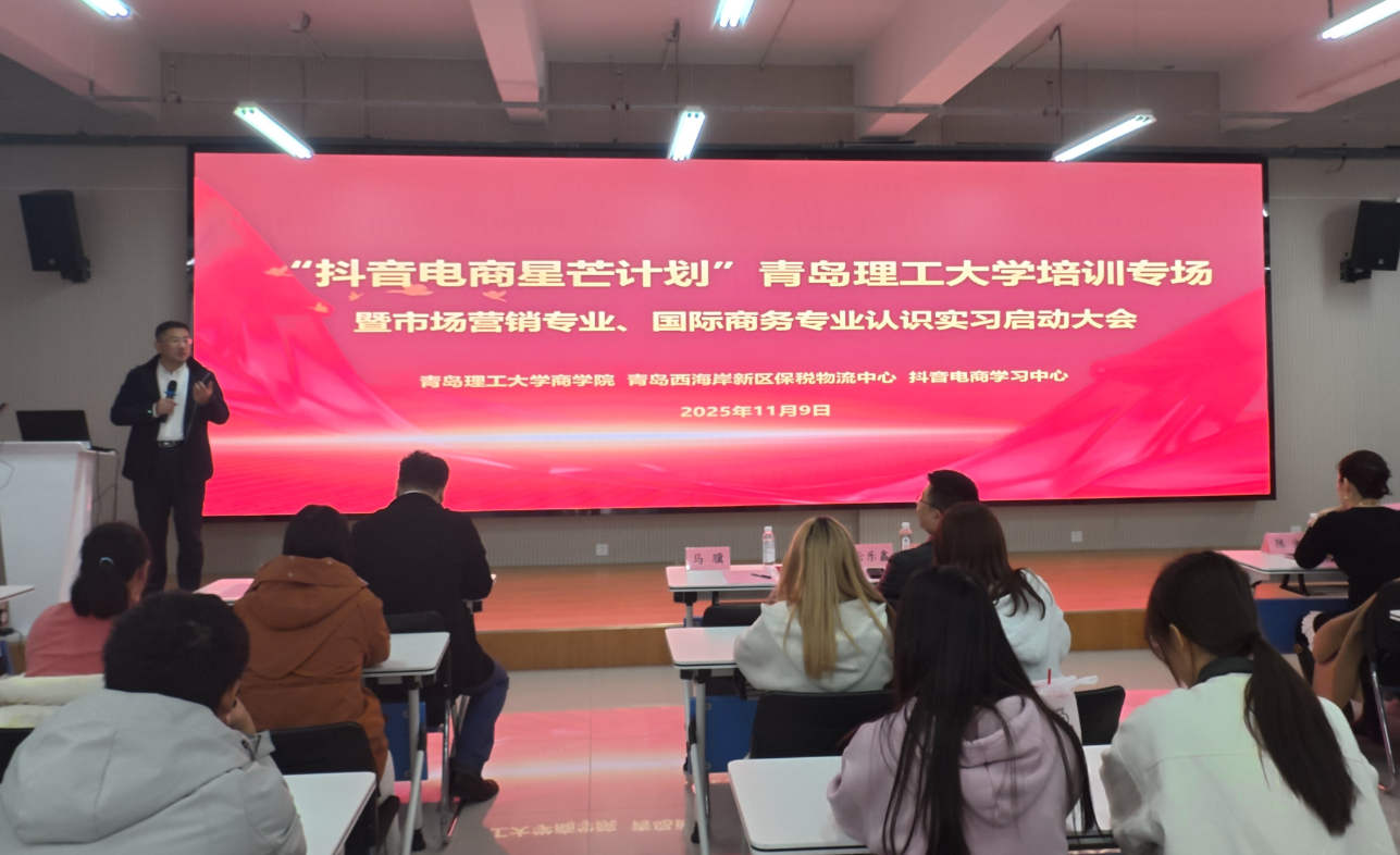 此次“抖音电商星芒计划”青岛理工大学培训专场暨市场营销、国际商务专业认识实习启动大会的顺利举办,不仅搭建起高校、企业与头部电商平台深度合作的坚实桥梁,更为专业人才培养注入了产业实践的鲜活动能。接下来,学院将以此次培训为契机,加强与抖音电商学习中心与保税物流中心协同合作,持续提升教师实践实训、跨境资源对接等方面的技能,助力学生在数智电商浪潮中锤炼本领、成长成才,共同书写产教融合、协同育人的崭新篇章。(撰稿:韩杰;审核:云乐鑫)