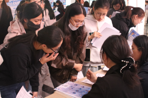 11月12日,商学院“商启金秋,职为你来”2025年秋季双选会在黄岛校区中央院系区C1-4一楼大厅举办。中国人民保险集团股份有限公司、北京大地泰华会计师事务所、青岛鼎世国际货运代理有限公司等省内外近50家优质企业和1000余名学生参加了招聘会。本次双选会以“招聘+服务+赋能”的创新模式,全面助力毕业生求职就业。
