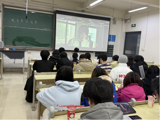 法治电影观影活动中,各班团支书组织同学集体观看《第二十条》法治主题影片,在光影故事里感受“法律面前人人平等”的原则,体会宪法对个体权利的坚实保障。观影结束后,同学们围坐讨论,结合影片情节分享自己对“宪法与生活”的理解,让抽象的法治精神变成了可感可触的成长感悟。在“宪法护航・青春铸魂”宪法宣誓活动现场,在领誓人的带领下,同学们举起右拳庄严宣誓,铿锵有力的誓言回荡在校园,传递着青年学子对宪法的尊崇与坚守。