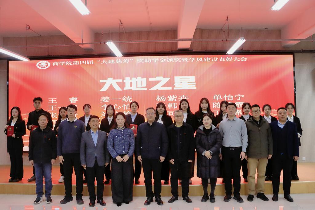 大地慈善奖助学金是山东大地公益慈善基金会在商学院设立的社会奖助学金,已连续四年向学院共捐赠40万元,旨在用于资助学习优秀和家庭经济困难的商院学子。此次表彰大会不仅是对爱心善举的致谢、对优良学风的弘扬,更是对学院育人工作的有力动员。未来,学院将继续深化三全育人格局,引导广大学子坚定理想信念、锤炼扎实本领、培养更多德才兼备、担当民族复兴大任的时代新人作出更大贡献。(撰稿:王赛、张夕璇、孙楚;审核:肖学斌、马松)