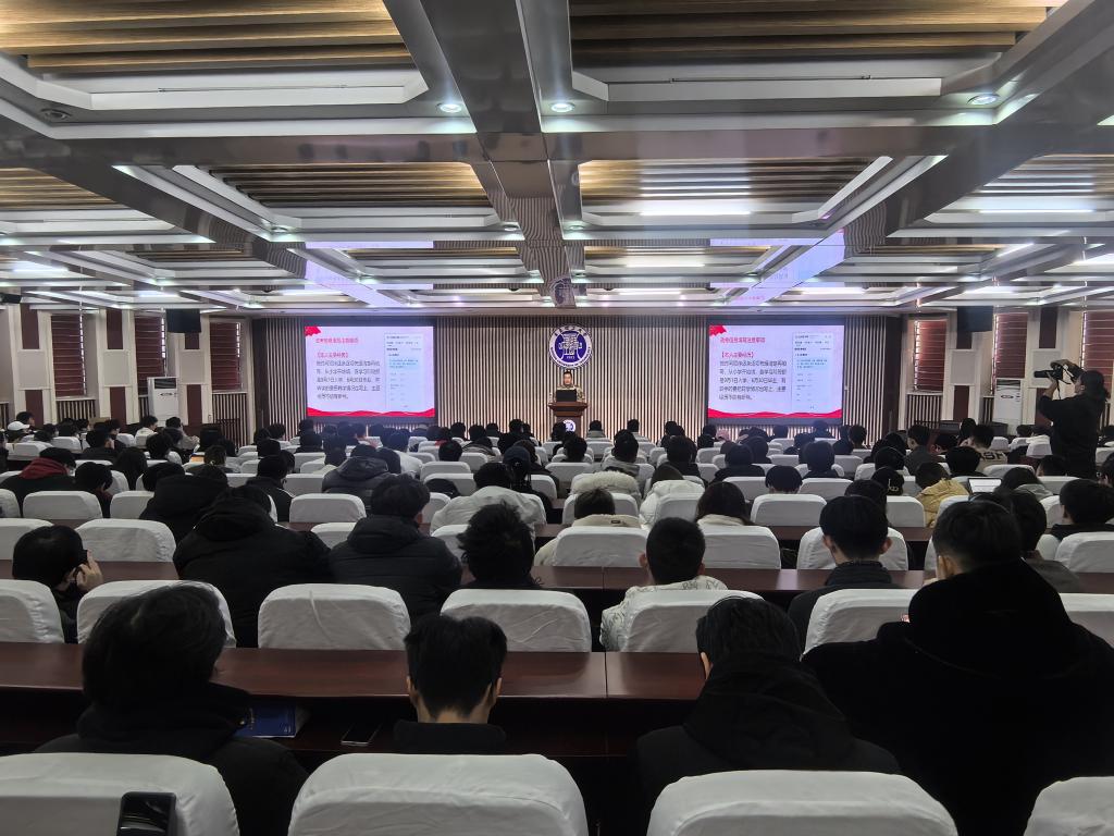 为深入学习贯彻习近平强军思想,进一步落实国家征兵工作相关要求,激发青年大学生参军入伍热情,推动学校征兵工作提质增效,12月25日,学生工作处(武装部)举办2026年上半年征兵政策宣讲会。特邀青岛市北区人民武装部军事科参谋钟翔同志担任主讲嘉宾,为全校有志投身国防事业的学子解读征兵政策,提供“一对一”现场咨询,300余名学生积极参加。