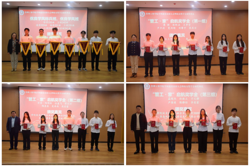 学院副院长(主持工作)赵辉宣读《管理工程学院关于表彰2025年学风建设先进集体、先进个人的决定》学校领导、校友代表和学院教师代表分别为获奖集体和学生颁发了荣誉证书。