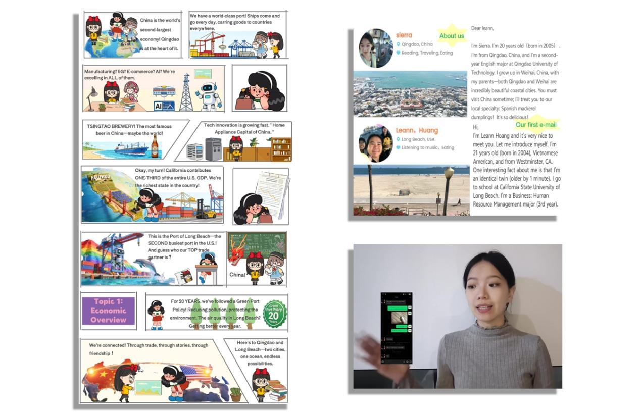 “青岛-长滩友城大学生在线笔友交流项目”由青岛市人民政府外事办公室与长滩-青岛友城委员会共同发起,自2020年开始举办以来,我校作为青岛市唯一参加高校已连续六年参与该项目,为学生国际交流搭建了沟通的桥梁,更为中美人文交流特别是青年交流树立了新典范,成为青岛、长滩两市友好交往的新品牌。2025年10月-11月,项目面向我校和加州州立大学长滩分校、加州城市学院的学生公开选拔,我校共56名学生最终与加州学生成功结对笔友。活动期间,双方同学在美食、节日、摄影、美妆、时尚、旅行、影视制作等多领域开展了线上跨文化主题交流收获了美好珍贵的友谊和交流体验。
