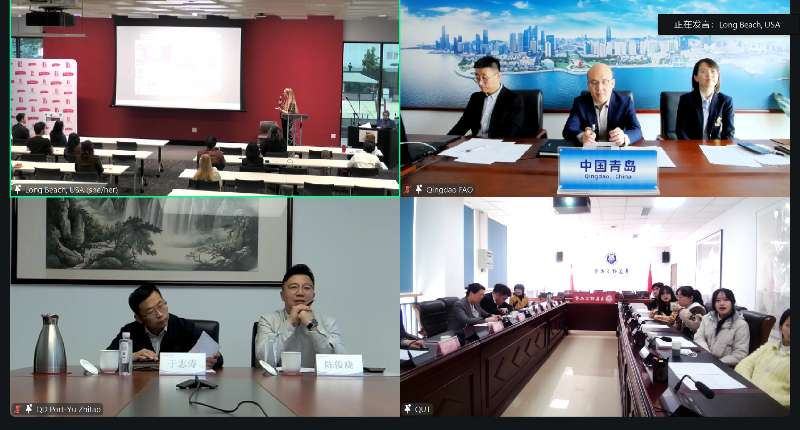3月27日,第六届“青岛-长滩友城大学生在线笔友交流项目”圆满落幕,我校师生代表受邀参加云端颁奖典礼。党委常委、副校长岳丽宏出席仪式并致辞,国际交流处、人文与外国语学院相关负责人员,以及我校获奖学生在综合服务中心301会议室参加线上颁奖仪式。仪式特别邀请了中国驻洛杉矶总领事馆杨利军领事,青岛市委外办副主任丁安辉,长滩-青岛友城委员会主席苏珊·雷德菲尔德,青岛港相关领导,以及加州州立大学长滩分校等外方学校师生代表线上共同参加。
