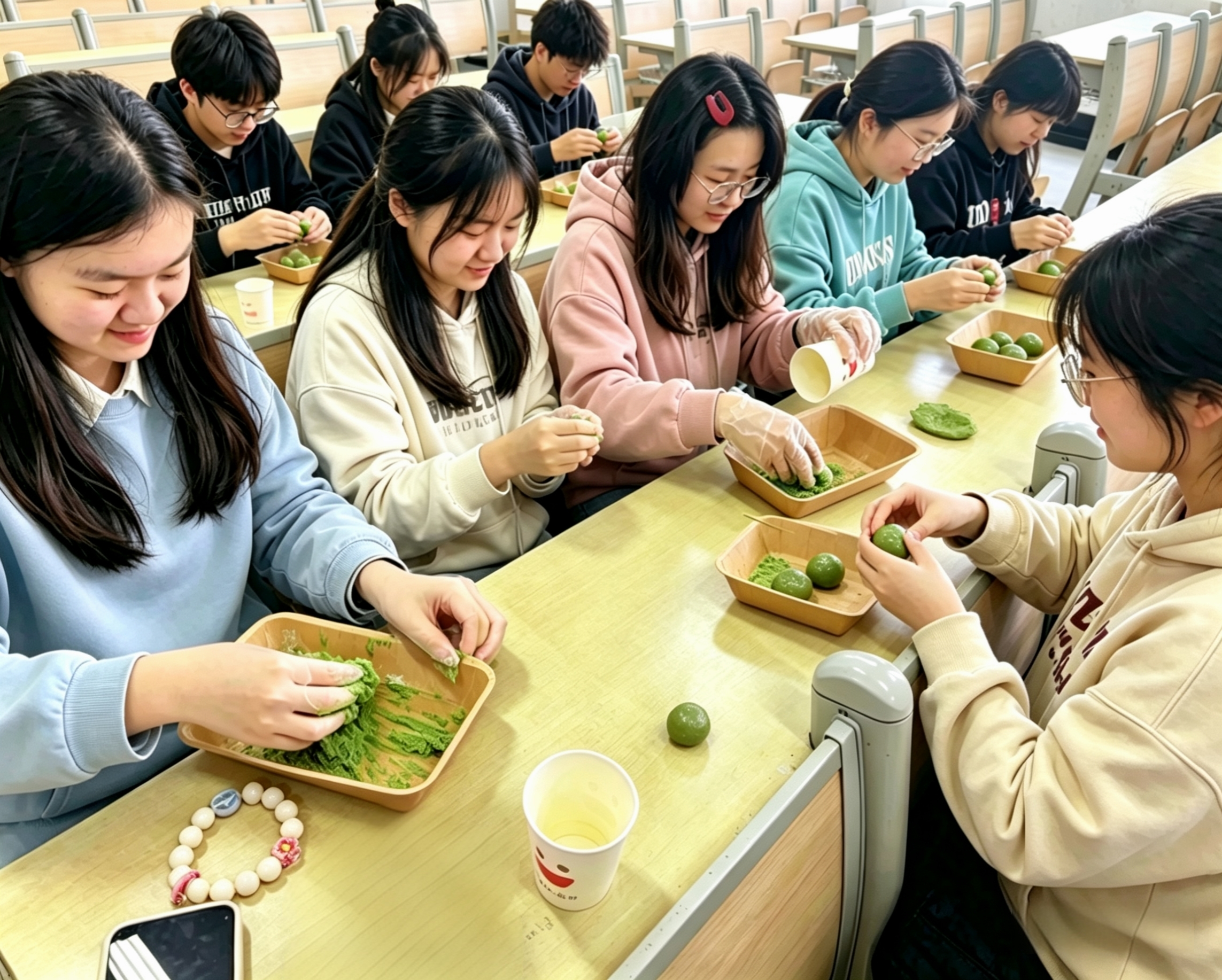 4月1日,商学院青芒志愿服务社团精心开展“指尖上的清明”传统文化实践课堂活动。活动现场,学生们亲手甄选新鲜艾草、揉制软糯糯米、包裹特色馅料、上锅蒸制青团,将寒食节“仲春修火禁”的古老民俗转化为可触摸、可体验、可品味的劳动实践。此次活动深度融合劳动教育、文化传承与思政育人要素,打造出兼具趣味性与教育性的特色思政课堂,让中华优秀传统文化在青年学子的动手实践中焕发新的生机与活力,进一步厚植青年学子的文化自信与民族认同感。