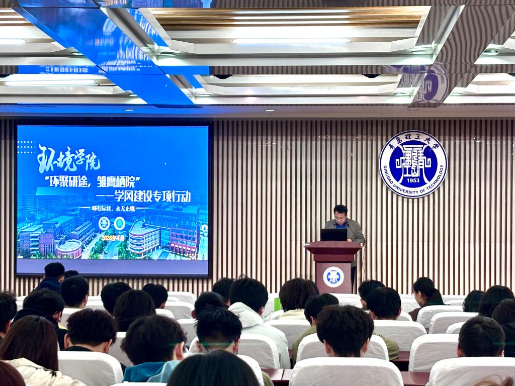 为深入落实立德树人根本任务,持续推进学风建设走深走实,精准对接2023级学生升学发展需求,鼓励更多学子深耕环境与市政工程学院相关专业,4月15日,环境与市政工程学院正式启动“环聚研途,雏鹰栖院”学风建设专项行动,以全链条、精准化、多维度的服务举措,凝聚学风建设新动能。学院党委副书记、副院长董虎主持启动仪式,副院长施雪卿为2023级全体学生作深耕专业专题报告。