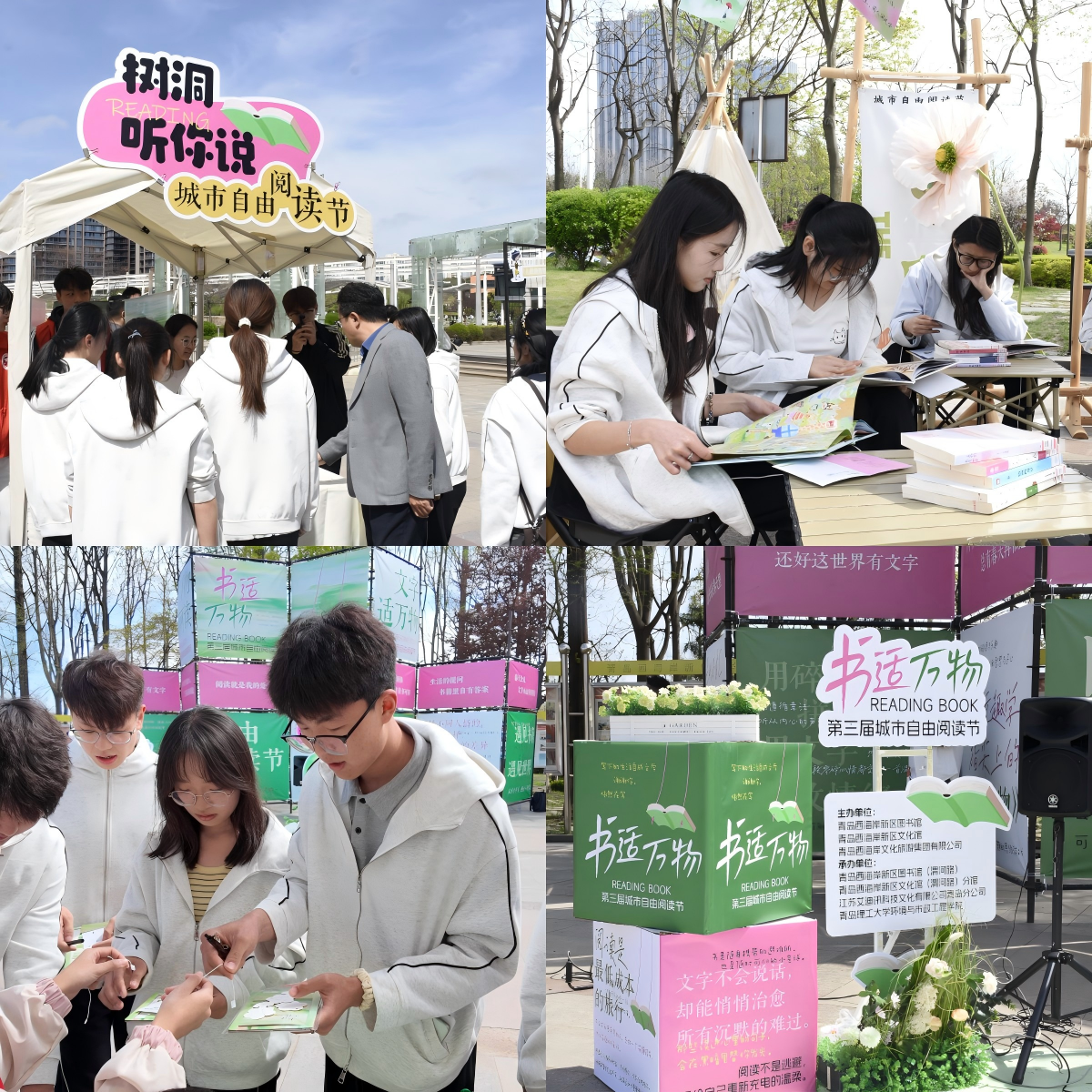 第31个“世界读书日”来临前,为响应国家全民阅读号召,深化校园文化建设,4月19日,环境与市政工程学院联合青岛西海岸新区图书馆、青岛西海岸新区文化馆开展了“书适万物”城市自由阅读节活动。活动在西海岸新区东区市民广场举行,打破校园与城市的边界,融合学院专业特色与城市文化底蕴,吸引学校师生、周边社区居民及城市阅读爱好者共同参与,打造了一场沉浸式、多元化的阅读盛宴,让书香浸润校园与城市的每一个角落。