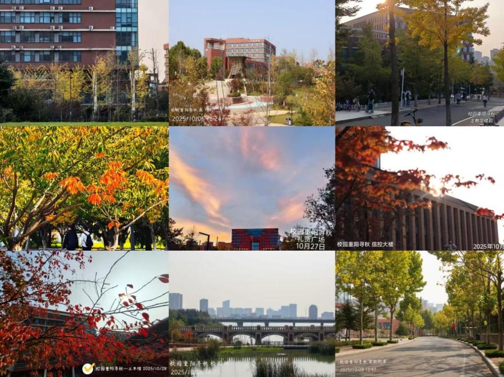 岁岁重阳又至,校园秋意正浓。学院思源社开展“登高寄情,寻秋绘景”校园文化打卡活动,学子们共赴一场与秋日校园的浪漫之约。此时的校园已是满庭秋光,银杏缀枝,风过洒金黄碎影;红枫倚楼,叠叶晕炽热秋意;图书馆前灌木丛,也悄悄换上橙红盛装。同学们漫步其间,用镜头定格校园秋景,在打卡中感受传统节日的韵味,大家沉浸式拥抱校园秋色,也为校园生活留下了温暖的秋日记忆。