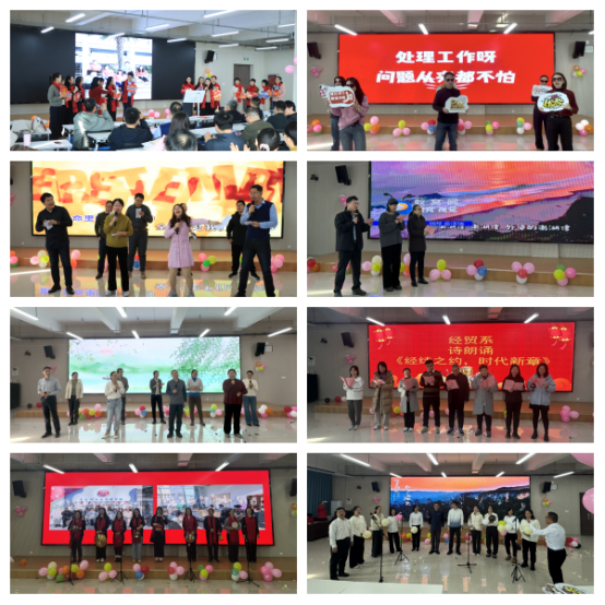 这场由教职工自编自导自演的文艺盛宴,堪称“宝藏云集”!合唱《明天会更好》《真心英雄》旋律一响起,便引发全场大合唱;学院领导班子合唱《光阴的故事》,熟悉的曲调里满是共鸣与期许;经贸系朗诵《经纬之约,时代新章》字字铿锵,尽显商科人的责任与担当;财管系“三句半”诙谐接地气,包袱频出,引得全场捧腹;辅导员于淼的古筝演奏清雅悠扬,指尖流转间让现场沉浸在古典韵味之中,歌曲、舞蹈、朗诵轮番登场。